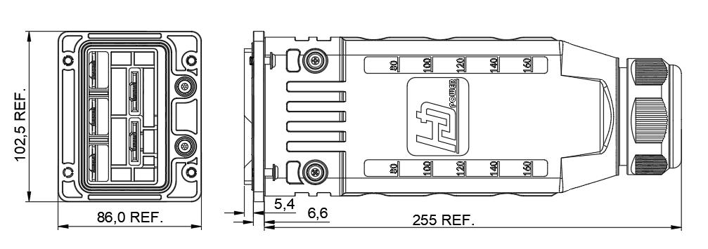 Handa HD brand Waterproof AC Power Terminal Block Connector 200A 5pin Rectangle Connector,panel side and cable side installed all-in-one structure, more compact size and more cost-effective for inverter equipment. Is suitable for PV Solar inverter's(Three Phases on-grid & Off-grid all-in-one inverter 50-80KW ) AC On-grid & Backup/EPS port(Each port 5pins, total 10pins),Tool unlocking mode for safe on-site installation,IP68 high level waterproof wall-through terminal block style, wire harness of this waterproof terminal block can be customized by clients' requirement.
