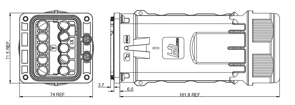 Handa HD brand Waterproof AC Power Terminal Block Connector 76A 10pin Rectangle Connector,panel side and cable side installed all-in-one structure, more compact size and more cost-effective for inverter equipment. Is suitable for PV Solar inverter's(Three Phases on-grid & Off-grid all-in-one inverter 30KW ) AC On-grid & Backup/EPS port(Each port 5pins, total 10pins),Tool unlocking mode for safe on-site installation,IP68 high level waterproof wall-through terminal block style, wire harness of this waterproof terminal block can be customized by clients' requirement.
